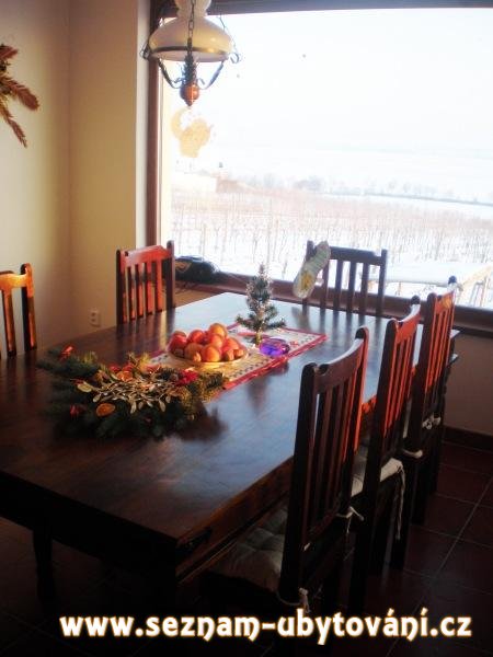 V ceně ubytování je návštěva vinného sklepa spojená s ochutnávkou. Ubytování nabízíme ve 3-lůžkovém a 4-lůžkovém pokoji. Dále je hostům k dispozici útulná společenská místnost která je vybavena televizorem se satelitním příjmačem. Také je tu kuchyňka plně vybavená s jídelním koutem a sociální zařízením + automatickou pračkou.Pro hosty, kteří si s sebou přivezou kola, kočárek apod. je připravena uzamykatelná místnost pro uskladnění těchto dopravních prostředků.Možnost využití venkovního grilu.