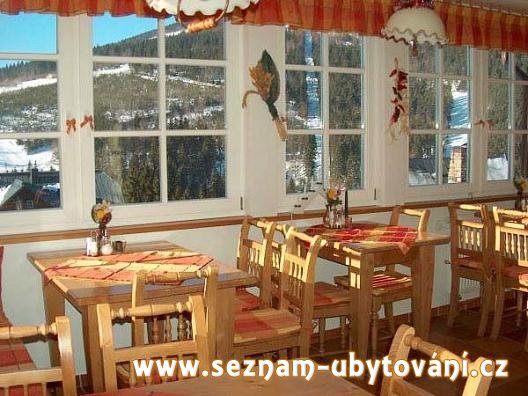 Součástí hotelu je restaurace s barem, která je hostům k dispozici denně cca od 8 do 10 hod. v době podávání snídaní a pak od 15 do 22 hodin. Snídaně jsou podávány bufetovou formou.